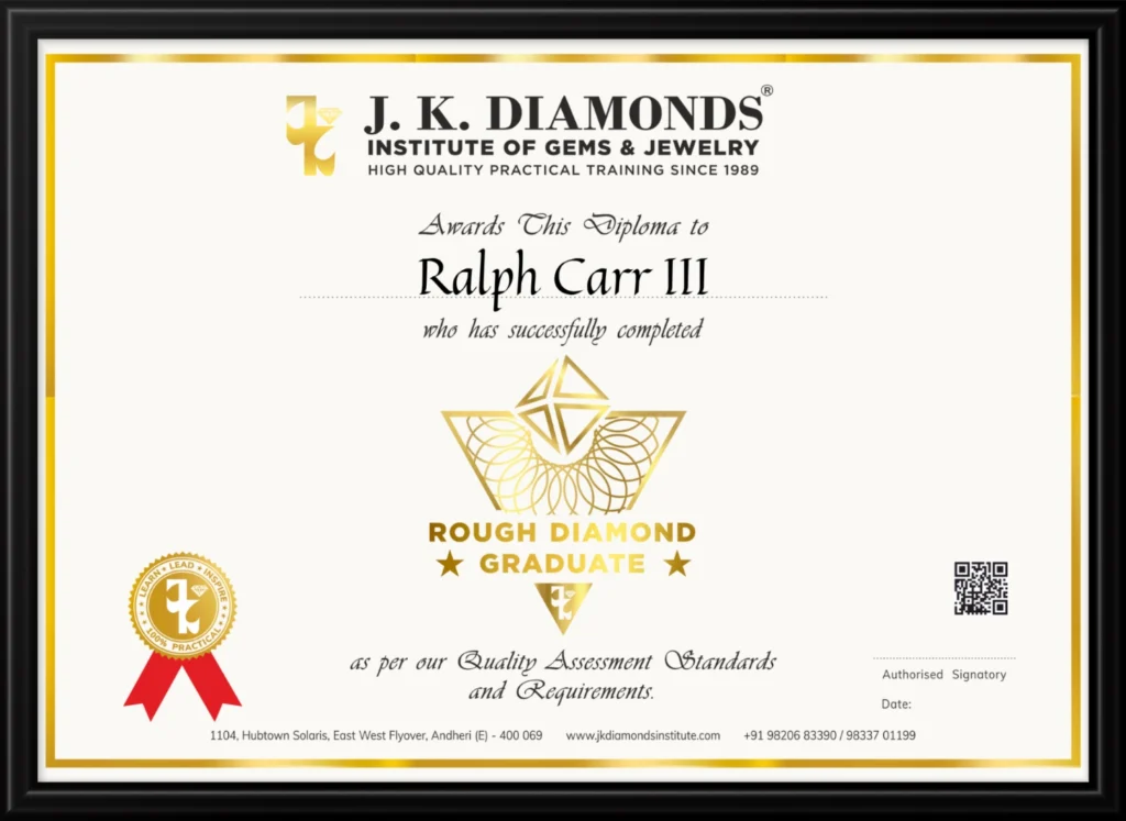 At J K Diamond Institute, we offer a rough diamond grading course that focuses on 100% practical training, hence setting itself apart from the limited options available anywhere else . Our comprehensive curriculum ensures a secure valuation system for rough diamond trade, leaving no room for losses. It comprises carefully designed modules that focus on practical aspects of rough diamond identification, grading, and valuation. With the guidance of our expert faculty and experienced instructors, students are immersed in an educational atmosphere that fosters a more professional approach to dealing with roughdiamonds. Hence, pursuing this course holds a high probability of establishing a prosperous and fulfilling career in this sector.