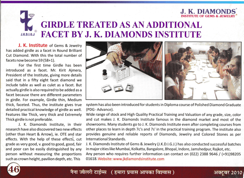 This article was first published in 2006 and is replicated here to give it a digital presence. J K Diamonds Institute of Gems & Jewelry, Mumbai,