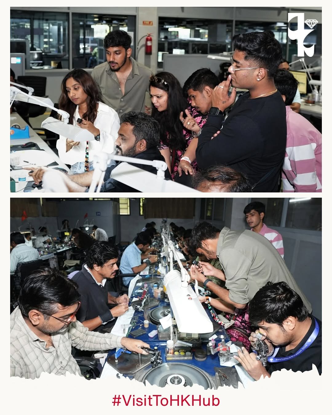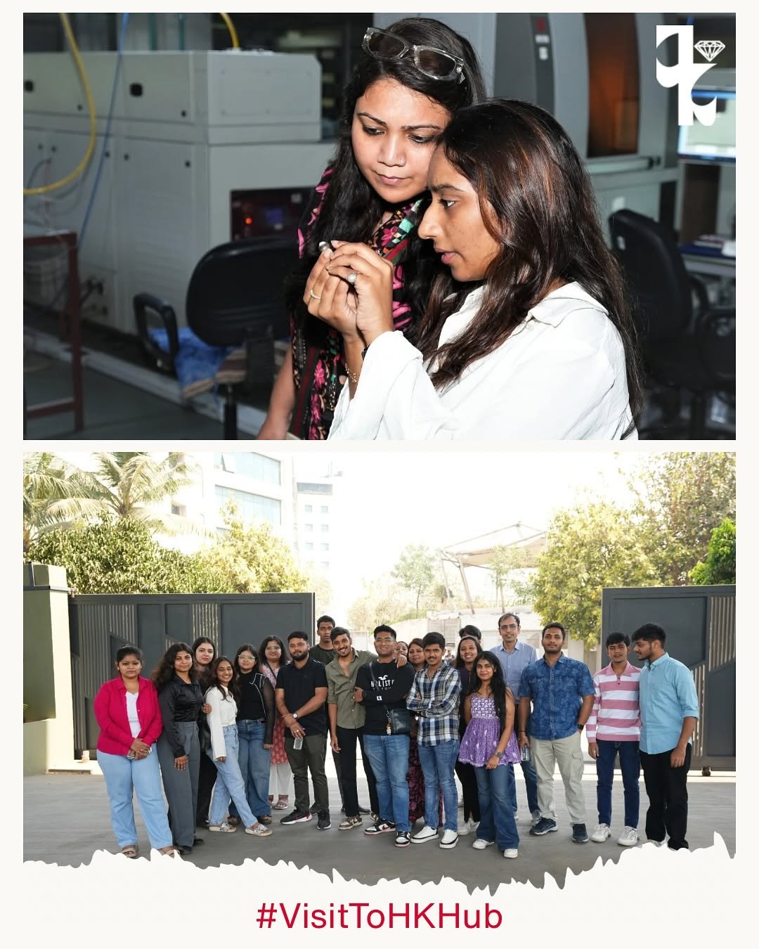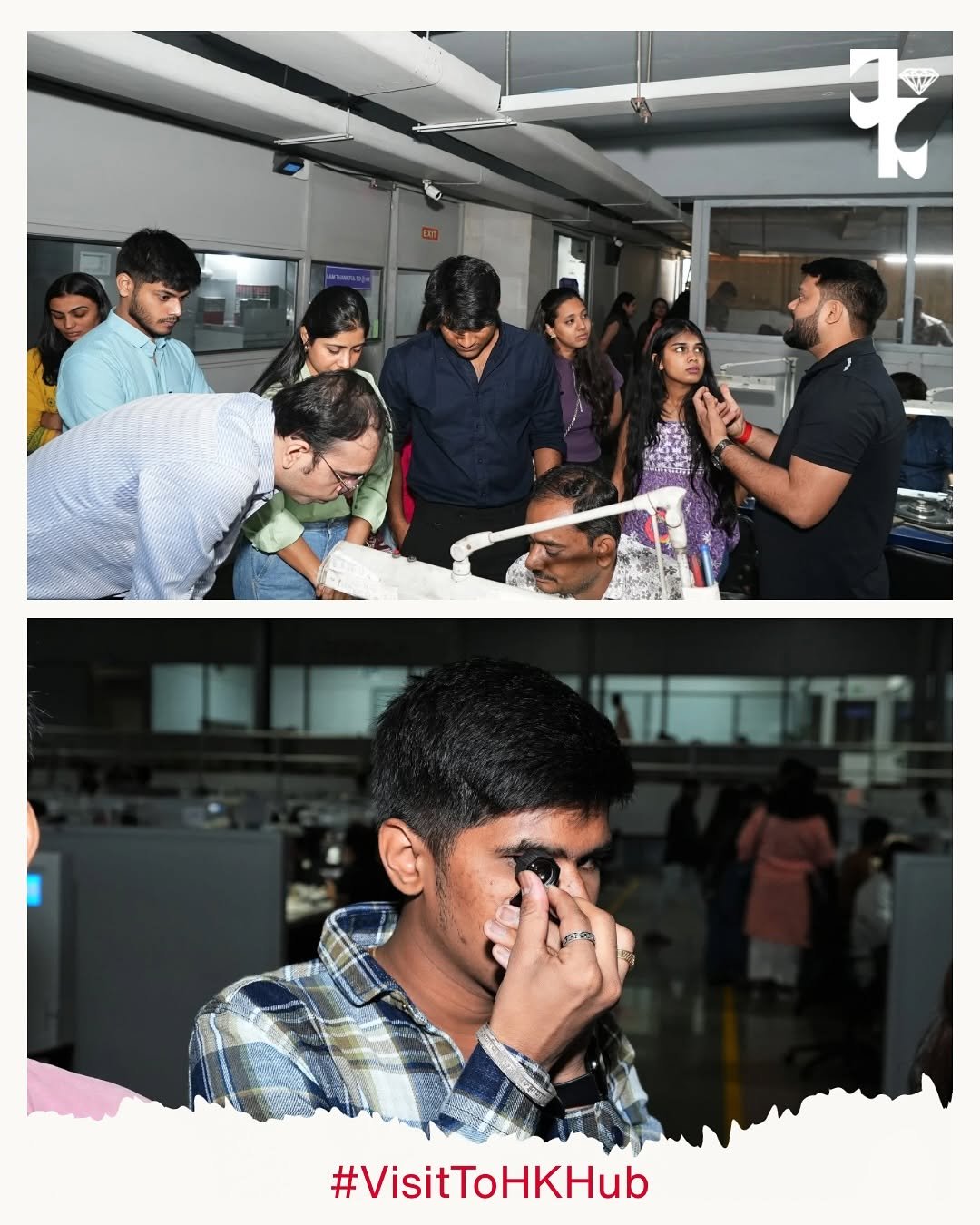 The morning of 29th March started with a visit to HK Hub, a well-known diamond polishing unit. With expert guidance from Mr. Naresh Bhai, students observed the precision and skill required in the polishing process, enhancing their technical understanding.