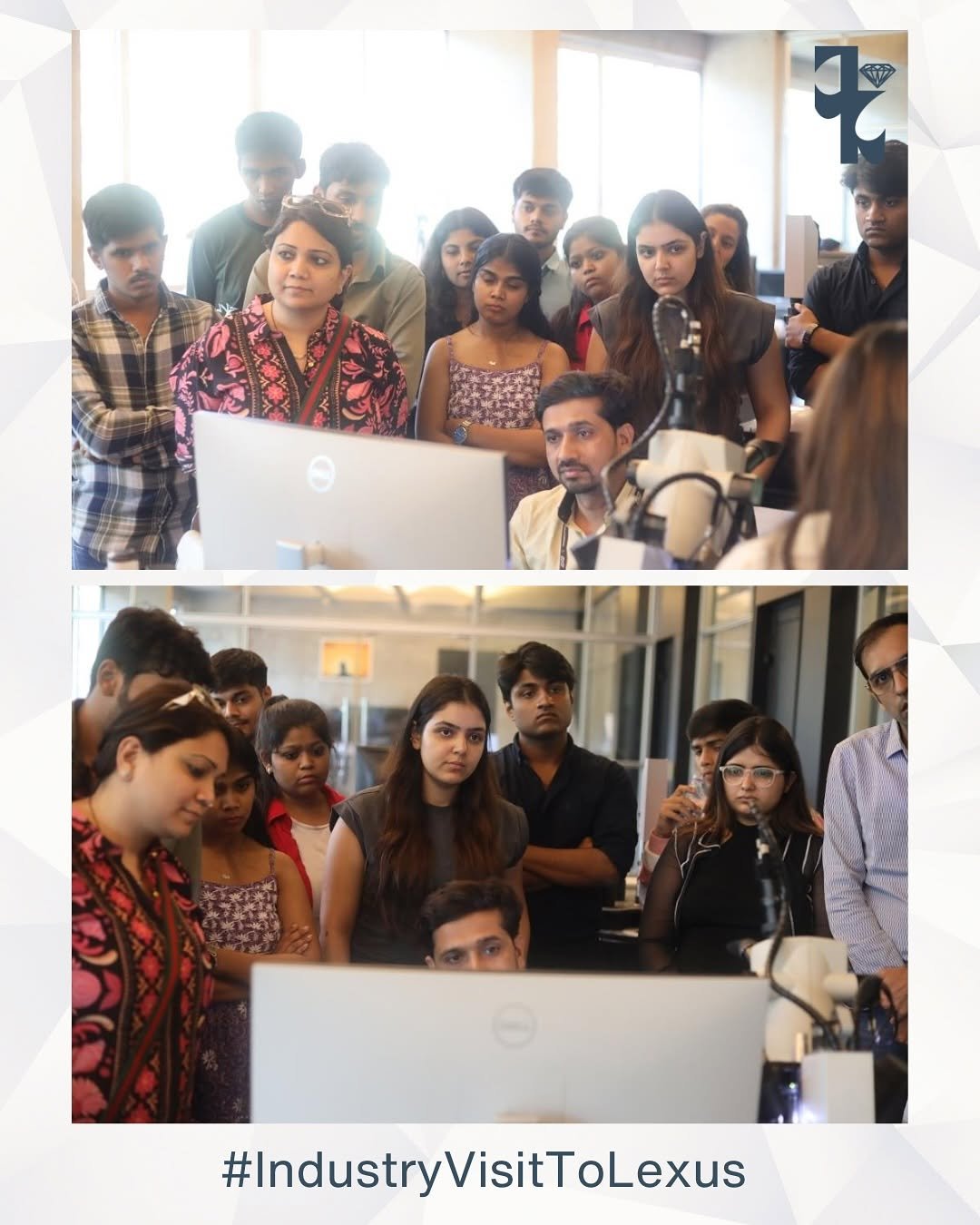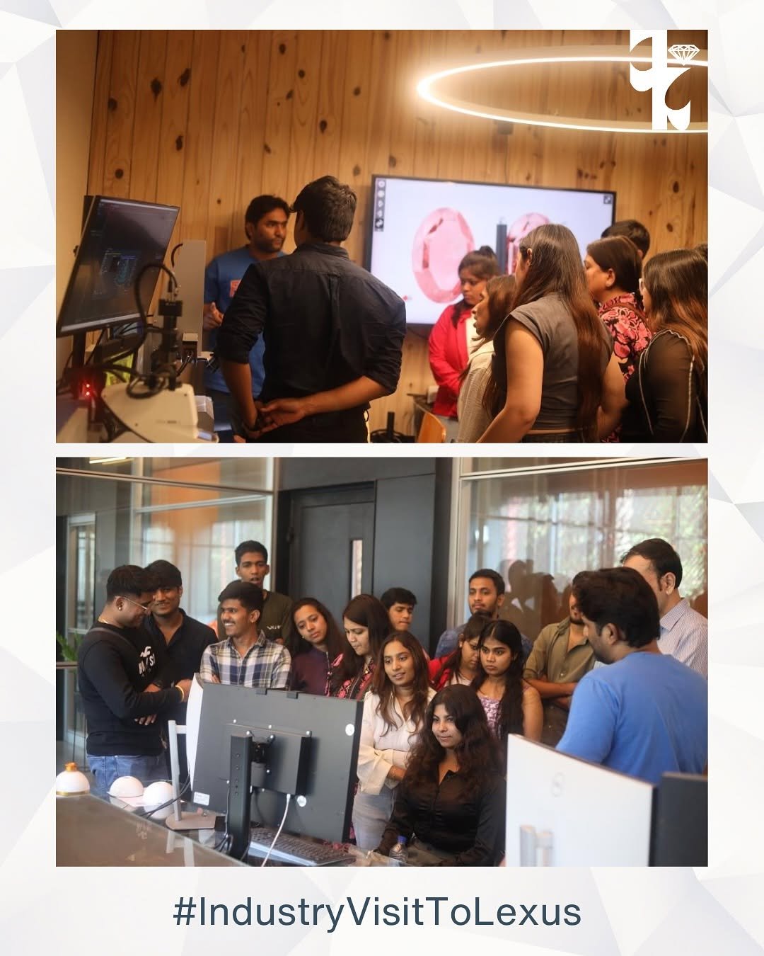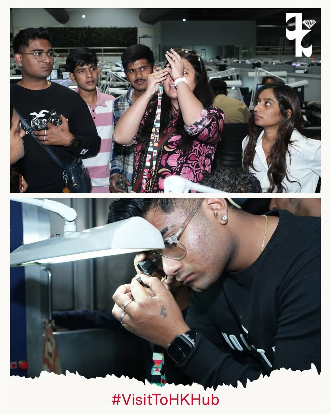 The morning of 29th March started with a visit to HK Hub, a well-known diamond polishing unit. With expert guidance from Mr. Naresh Bhai, students observed the precision and skill required in the polishing process, enhancing their technical understanding.