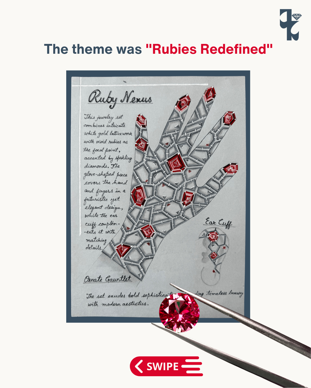 A standout moment was at the Jaipur Jewellery Design Festival 2024, where our student Ms. Sonal Lakhera secured 2nd place in the design competition themed “Rubies Redefined.” Competing against over 100 designs from 10 top institutes, Sonal’s innovative piece beautifully captured the theme, showcasing her skill and artistry.