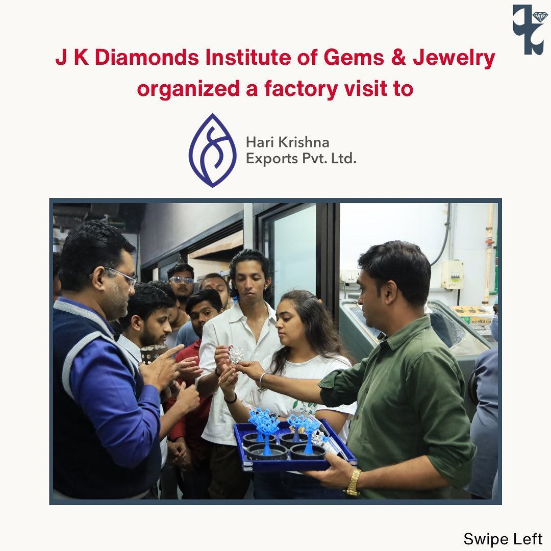J K Diamonds Institute organized a factory visit to Hari Krishna Exports. Students of JK Diamonds witnessed the skilled craftsmanship proving it to be an insightful visit to the heart of jewelry manufacturing.