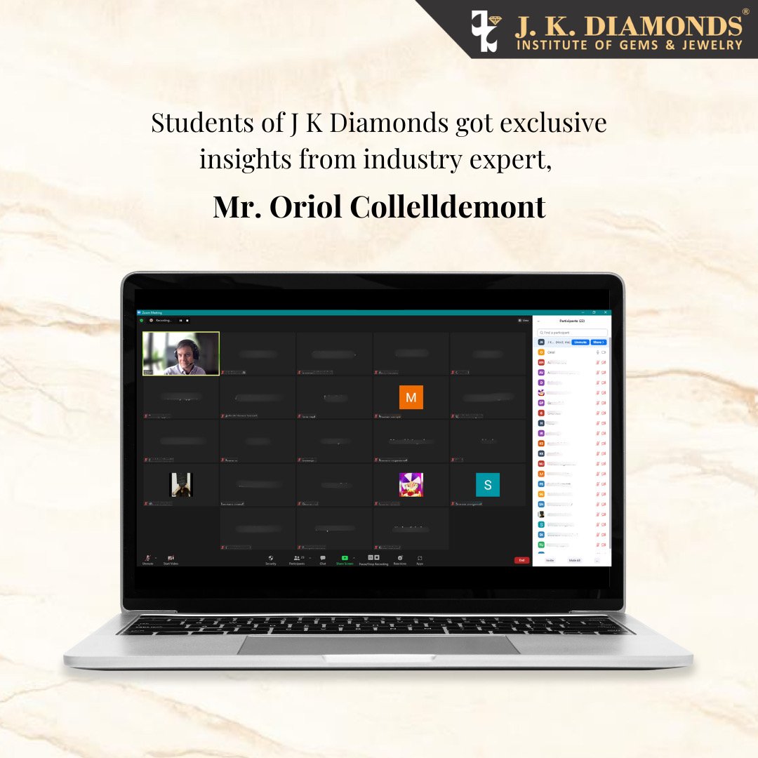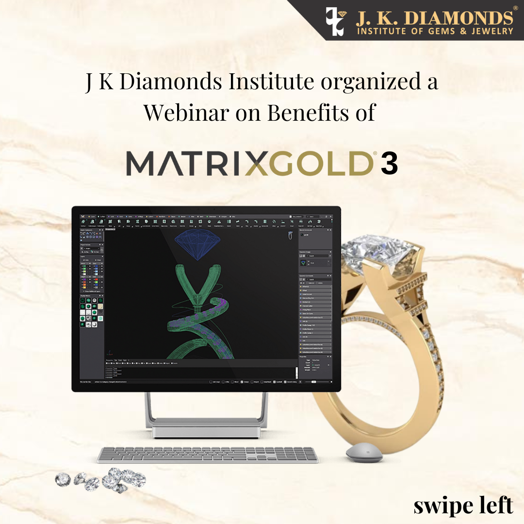 J K Diamonds Institute of Gems & Jewelry organized a webinar for the J K students on the “Benefits of MatrixGold 3”. The guest speaker for this webinar was Mr. Oriol Collelldemont, Product Director, Gemvision. In this webinar students got to learn some tips and tricks on Matrix Gold3 to make their journey in the gems and jewelry industry a lot easier.