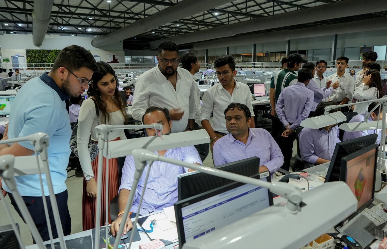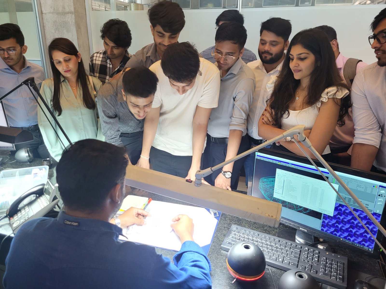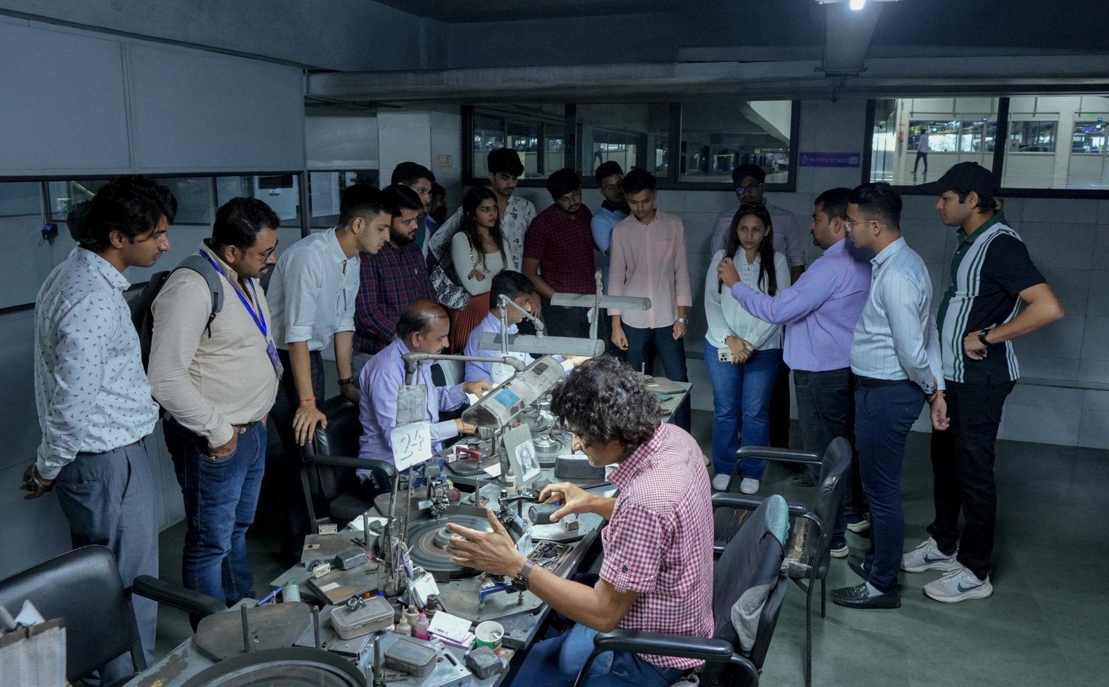 Kicking off on April 26th, 2024, the tour commenced with a captivating visit to the “Kisna Jewelry Manufacturing Factory”, a retail extension of Hari Krishna Exports. Here, students were offered a unique opportunity to witness the intricacies of diamond jewelry manufacturing firsthand. From the meticulous craft of diamond setting to the refinement of jewelry design, they gained extremely useful insights into the entire process. Additionally, they explored the HK Hub, observing the real-time transformation of rough diamonds into polished ones, along with the cutting and polishing procedures involved.